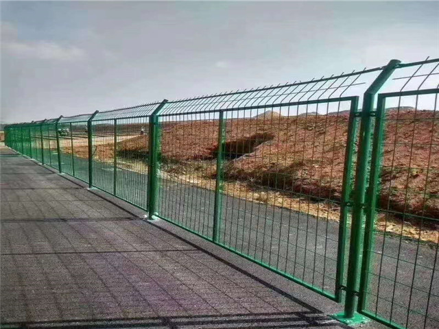 机场护栏飞机场护栏网又被称作作“Y型安全防御安全防护网”,是由V型固定支架立柱,加厚电弧焊接电焊焊接片网,安全系数防盜连接件和热镀锌刀片刺笼组成抗拉强度和安全系数防御性级别很高。现被普遍应用在机场,军事禁区等值线安全系数场所。注:倘若在飞机场护栏网顶部改裝刀片刺丝、刀片刺绳后又很好的提升 了安全防护特性。采用电镀、热镀、静电粉末喷涂、热浸锌等耐腐蚀方法,具有很好的抗老化、抗晒、耐候等特性。其产品产品造型设计美观、花型图案各种各样,既具备防护栏作用,又具备清除作用。由于具有安全性能高、防攀爬专业能力好,网片接口标准采用尤其制做SBS紧紧围绕件,有效防止人为失误的破坏性拆卸,打横四道钣金件钣金折弯筋板,使表层抗拉强度显著提高。